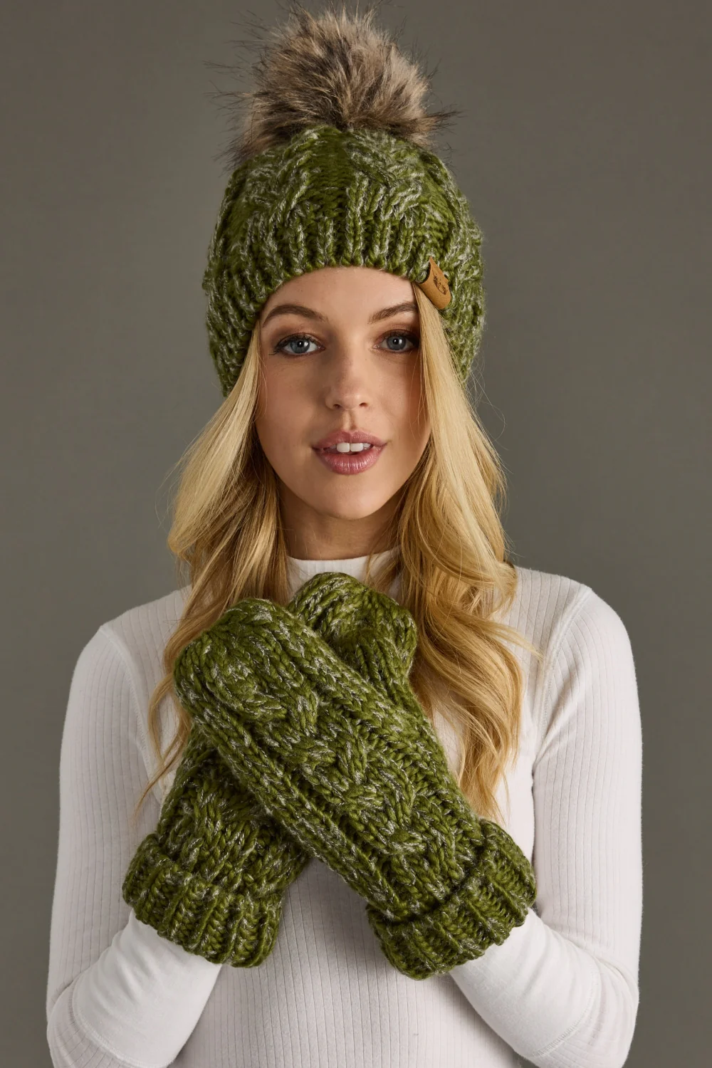 - Olive cable knit hat